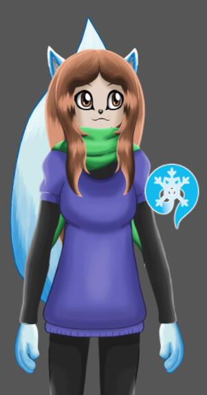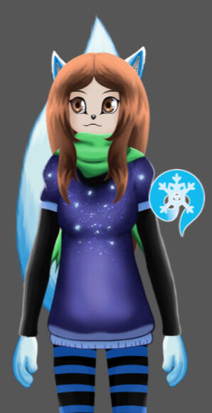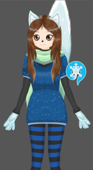Then, one day while I was doing my chores as a normal human, the big question occurred to me: what if I made a character like hers to keep her company?So I got to work and drew what I had in mind, but it happened that it didn't fit me that she had the ears the same color as her hair and since my favorite color is blue, I put the ears in blue and as pieces totally independent of the head.And that's how I came up with the design for Yukiko Snowflake.The name also has its little story. I really like the snow and I always try to be happy and see the good part of things.Yuki = Snow in Japanese